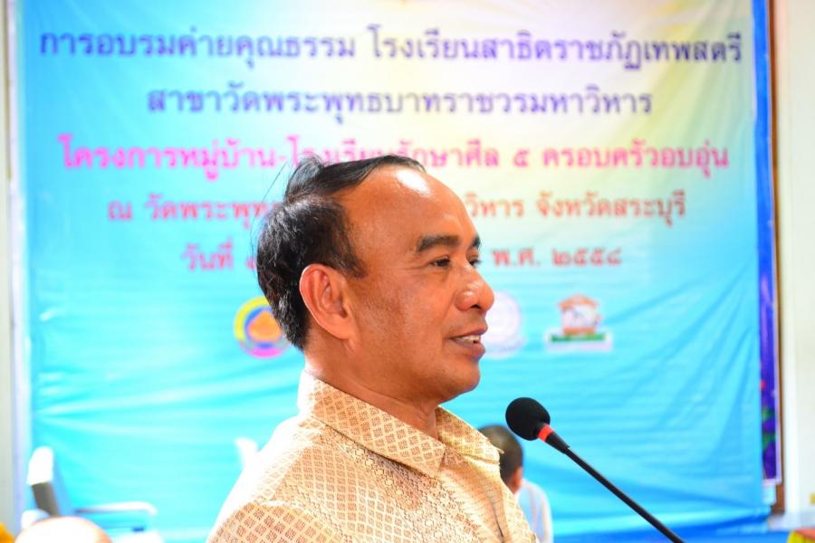 คุณสุเทพ ภู่รัตนโอภา รองผู้อำนวยการสำนักงานพระพุทธศาสนา จ.สระบุรี เป็นตัวแทนมากล่าวต้อนรับการจัดอบรมค่ายคุณธรรมในครั้งนี้