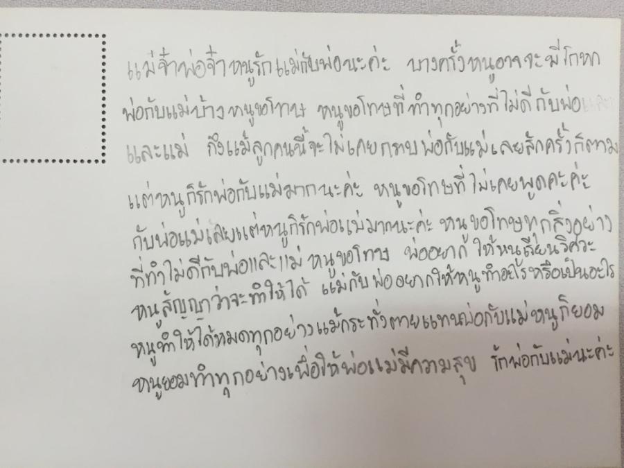ช่วงค่ำ พอจ.จิรวัฒน์ เทศน์เรื่อง พระคุณพ่อ-แม่ ทำให้น้องๆระลึกนึกถึงพระคุณของคุณพ่อ-คุณแม่ จนน้ำตาไหล และต่างเขียนจดหมายถึงคุณพ่อ-คุณแม่ เพื่อขอขมาในความผิดที่เคยทำและตั้งใจจะเป็นเด็กดีของคุณพ่อ-คุณแม่สืบต่อไป