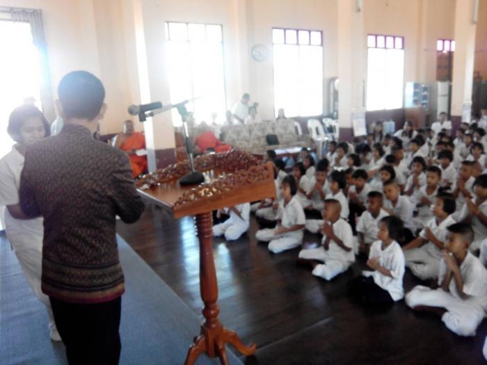 วันที่ ๑๐ มิ.ย.๕๘ เวลา ๐๙.๐๐ น. สมุทรปราการ เปิดโครงการหนึ่งใจให้ธรรมะ เชิญชวนคณะครู อาจารย์ นักเรียนสมัครรักษาศีล www.sila.com และแจกสติ๊กเกอร์ รักษาศีล 5 และสอนวิธีสมัครทางเว็บไซต์ให้ อาจารย์สอนคอมพิวเตอร์ เพื่อสอนนักเรียนและครู ณ. วัดบ้านระกาศ ต.บางบ่อ อ.บางบ่อ จ.สมุทรปราการ